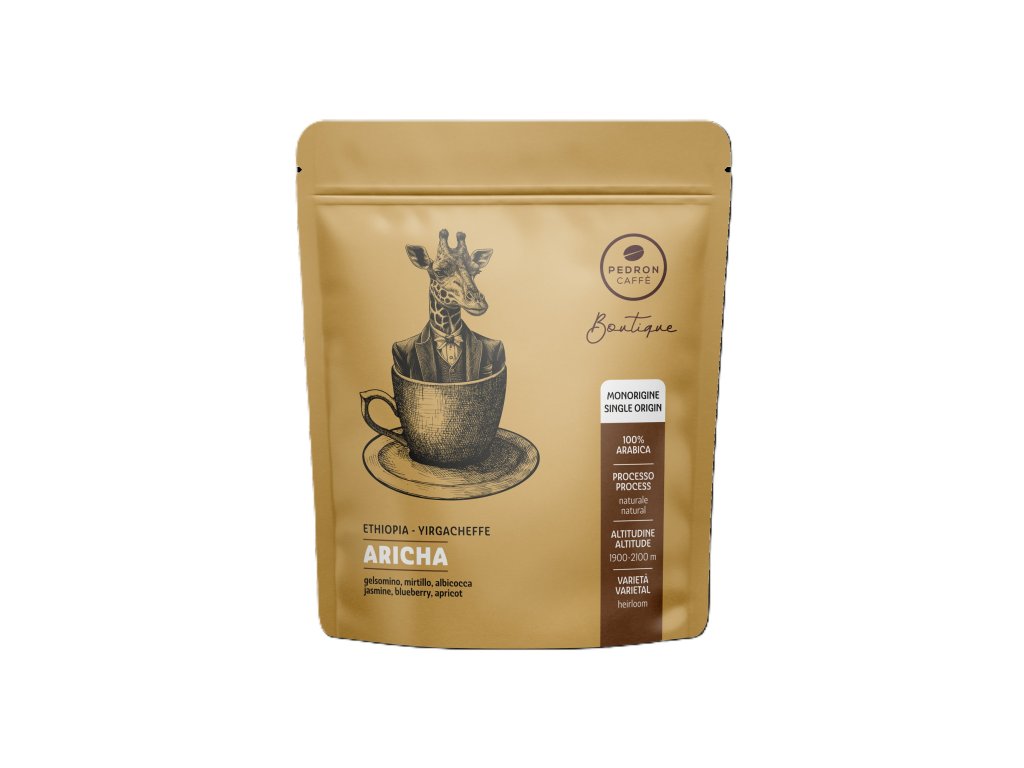 Tato káva se pěstuje ve vysokohorské oblasti Yirgacheffe, kde se nachází pražírna Aricha. Káva z této oblasti je ceněna pro své květinové tóny a citrusovou kyselost. V současné době má země typickou strukturu „malých zemědělců“, což znamená, že mnoho farmářů s obecně skromnou produkcí sbírá své třešně a přiváží je do centrálních pražíren, místo aby kávu zpracovávali vlastními stroji. Po sklizni pouze nejzralejších třešní se tyto rozloží v tenkých vrstvách na takzvaných „afrických lůžkách“, kde se pečlivě suší, dokud nedosáhnou vlhkosti přibližně 12 %. Během dne se třešně neustále obrací, aby se zajistilo rovnoměrné sušení. Chuť – jasmín, borůvky, meruňky