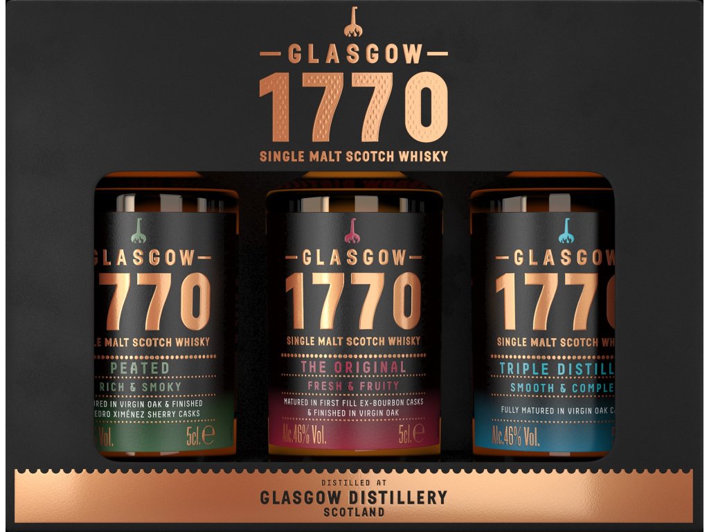 degustační sada standadního sortimentu 3 druhů whisky Glasgow 1770